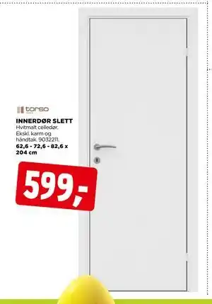 INNERDØR SLETT er denne uken tilgjengelig hos jem & fix med en attraktiv rabatt. Her finner du informasjon om gjeldende pris, kampanjevilkår og spesialrabatter. Tilbudet gjelder i uke 12. Er det utløpt, kan du se andre aktuelle tilbud. Følg produktkategorien for å motta varsler når INNERDØR SLETT igjen har en gunstig pris hos jem & fix.Spørsmål og svar om INNERDØR SLETT
