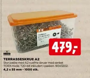Nå på tilbud hos jem & fix: TERRASSESKRUE A2 ✅ Gyldig fra 26-04 til 2-05.