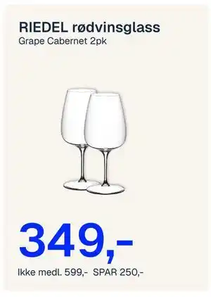 Nå på tilbud hos Jernia: RIEDEL rødvinsglass, NOK 599, Medlemspris ✅ Gyldig fra 1-12 til 3-01.