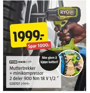 Muttertrekker + minikompressor 2 deler 900 Nm 18 V 1/2 ” tilbud og nettkampanjer hos Jula