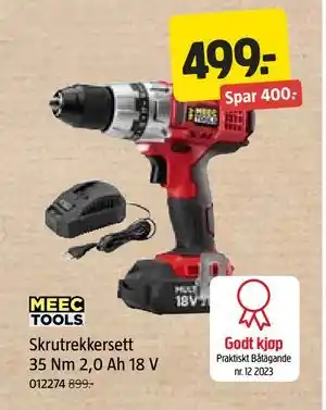 Dette tilbudet kan finnes i forskjellige butikker. Ta en titt på alle produkter for å få det billigste Skrutrekkersett 35 Nm 2,0 Ah 18 V. Hvis du vil finne ut om dette produktet har en større rabatt i en annen butikk, sjekk kategorien 'Bygg'. Du vil sikkert se disse tilbudene også: Mini skrutrekker med vinklingsbart håndtak 3,5 Nm 1,3 Ah 3,6 V, Meec tools skrutrekker med batteri og lader 35 nm, 2,0 ah, 18 v & Meec tools miniskrutrekker med håndtak som kan vinkles 3,5 nm, 1,3 ah, 3,6 v.
