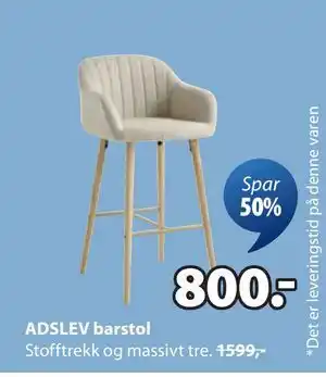 ADSLEV barstol er denne uken tilgjengelig hos JYSK med en attraktiv rabatt. Her finner du informasjon om gjeldende pris, kampanjevilkår og spesialrabatter. Tilbudet gjelder i uke 01. Er det utløpt, kan du se andre aktuelle tilbud. Følg produktkategorien for å motta varsler når ADSLEV barstol igjen har en gunstig pris hos JYSK.Spørsmål og svar om ADSLEV barstol