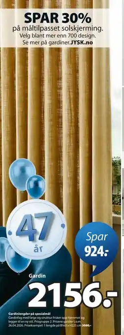 Nå på tilbud hos JYSK: Gardinlengder på spesialmål ✅ Gyldig fra 23-03 til 26-04.