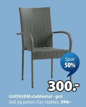 Denne GUDHJEM stablestol - grå er nå på tilbud hos JYSK. Sjekk siste kampanjer med konkurransedyktig pris og gode rabatter. Du kan bestille GUDHJEM stablestol - grå online via JYSK sin nettside eller kjøpe til lavest tilgjengelig pris. Kundeavisogtilbud.no samler alltid de beste GUDHJEM stablestol - grå-tilbudene for deg. Vil du være først med å vite om nye kampanjer? Aktiver varsler og få beskjed når GUDHJEM stablestol - grå er på tilbud igjen.Spørsmål og svar om GUDHJEM stablestol - grå