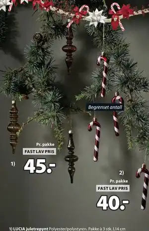 Nå på tilbud hos JYSK: LUCIA juletrepynt, NOK 45 ✅ Gyldig fra 1-12 til 13-12.