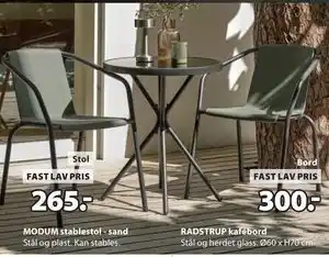 MODUM stablestol - sand er denne uken tilgjengelig hos JYSK med en attraktiv rabatt. Her finner du informasjon om gjeldende pris, kampanjevilkår og spesialrabatter. Tilbudet gjelder i uke 18. Er det utløpt, kan du se andre aktuelle tilbud. Følg produktkategorien for å motta varsler når MODUM stablestol - sand igjen har en gunstig pris hos JYSK.Spørsmål og svar om MODUM stablestol - sand