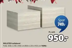 Prisen på ROLSTED sofabord finner du øverst på siden, sammen med datoene da tilbudet er tilgjengelig. Du kan sjekke prisen i gjeldende JYSK kundeavis eller på JYSK nettsiden, hvis du vil. Kampanjer og spesial tilbud gir deg en sjans om å kjøpe JYSK produkter til den laveste prisen.