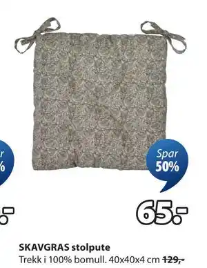JYSK tilbyr et bredt utvalg av produkter, i tillegg til SKAVGRAS stolpute. Hold deg oppdatert med ukens JYSK kundeavis for å finne fantastiske tilbud og kampanjer. I tillegg til SKAVGRAS stolpute, kan du også finne disse tilbud: PIL stolpute, PÄrleternell Stolpute, Grann svart, 35 cm & Vattenmott Stolpute, beige, 40x38x5.0 cm.