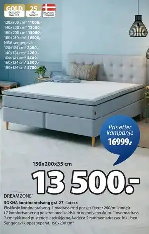 SOKNA kontinentalseng grå-27 - lateks tilbud og nettkampanjer hos JYSK
