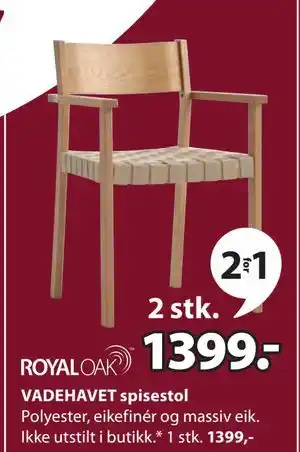 JYSK tilbyr et bredt utvalg av produkter, i tillegg til VADEHAVET spisestol, NOK 1399. Hold deg oppdatert med ukens JYSK kundeavis for å finne fantastiske tilbud og kampanjer. I tillegg til VADEHAVET spisestol, NOK 1399, kan du også finne disse tilbud: Celina spisestol, NOK 1299, JYDERUP spisestol, NOK 1099 & EJSTRUP spisestol, NOK 799.
