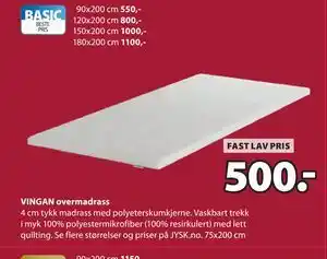 Denne VINGAN overmadrass er nå på tilbud hos JYSK. Sjekk siste kampanjer med konkurransedyktig pris og gode rabatter. Du kan bestille VINGAN overmadrass online via JYSK sin nettside eller kjøpe til lavest tilgjengelig pris. Kundeavisogtilbud.no samler alltid de beste VINGAN overmadrass-tilbudene for deg. Vil du være først med å vite om nye kampanjer? Aktiver varsler og få beskjed når VINGAN overmadrass er på tilbud igjen.Spørsmål og svar om VINGAN overmadrass