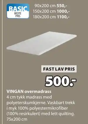 VINGAN overmadrass tilbud hos JYSK