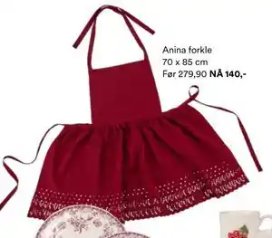 Anina forkle 70 x 85 cm er denne uken tilgjengelig hos Kid Interiør med en attraktiv rabatt. Her finner du informasjon om gjeldende pris, kampanjevilkår og spesialrabatter. Tilbudet gjelder i uke 51. Er det utløpt, kan du se andre aktuelle tilbud. Følg produktkategorien for å motta varsler når Anina forkle 70 x 85 cm igjen har en gunstig pris hos Kid Interiør.Spørsmål og svar om Anina forkle 70 x 85 cm