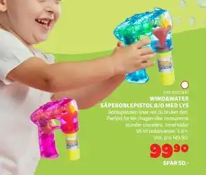 WIND&WATER SÅPEBOBLEPISTOL B/O MED LYS tilbud og nettkampanjer hos Lekia