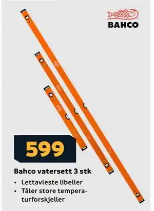 Prisen på Bahco vatersett 3 stk, NOK 599 finner du øverst på siden, sammen med datoene da tilbudet er tilgjengelig. Du kan sjekke prisen i gjeldende Megaflis kundeavis eller på Megaflis nettsiden, hvis du vil. Kampanjer og spesial tilbud gir deg en sjans om å kjøpe Megaflis produkter til den laveste prisen.