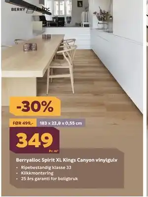 Berryalloc Spirit XL Kings Canyon vinylgulv er denne uken tilgjengelig hos Megaflis med en attraktiv rabatt. Her finner du informasjon om gjeldende pris, kampanjevilkår og spesialrabatter. Tilbudet gjelder i uke 10. Er det utløpt, kan du se andre aktuelle tilbud. Følg produktkategorien for å motta varsler når Berryalloc Spirit XL Kings Canyon vinylgulv igjen har en gunstig pris hos Megaflis.Spørsmål og svar om Berryalloc Spirit XL Kings Canyon vinylgulv