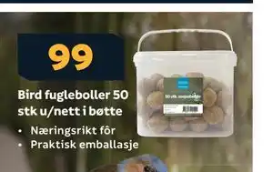 Nå på tilbud hos Megaflis: Bird fugleboller 50 stk u/nett i bøtte ✅ Gyldig fra 22-01 til 28-01.