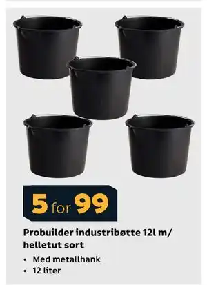 Probuilder industribøtte 12l m/ helletut sort-kampanje hos Megaflis