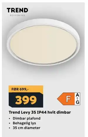 Nå på tilbud hos Megaflis: Trend Levy 35 IP44 hvit dimbar ✅ Gyldig fra 9-04 til 26-04.