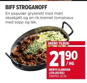 Nå på tilbud hos Meny: BIFF STROGANOFF ✅ Gyldig fra 14-12 til 24-12.