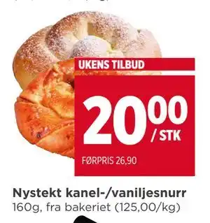 Nå på tilbud hos Meny: Nystekt kanel-/vaniljesnurr ✅ Gyldig fra 9-02 til 11-02.