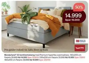 Wonderland K4 kontinentalseng rabatt hos Møbelringen