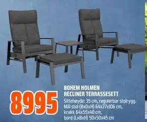 BOHEM HOLMEN RECLINER TERRASSESETT tilbud og nettkampanjer hos Obs Bygg