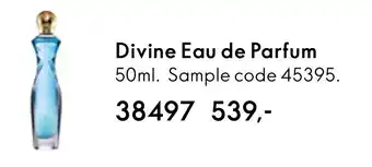 Prisen på Divine Eau de Parfum finner du øverst på siden, sammen med datoene da tilbudet er tilgjengelig. Du kan sjekke prisen i gjeldende Oriflame katalog eller på Oriflame nettsiden, hvis du vil. Kampanjer og spesial tilbud gir deg en sjans om å kjøpe Oriflame produkter til den laveste prisen.