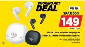 Denne Air 200 True Wireless ørepropper er nå på kampanje hos POWER. Her finner du oppdatert pris, kampanjevilkår og varighet. Sammenlign med andre lignende kampanjer for å sikre best mulig kjøp. Kampanjen varer fra 23-02-2026 til 22-03-2026. Hvis den utløper, kan du se andre aktuelle tilbud. Følg produktkategorien for å vite når Air 200 True Wireless ørepropper igjen er på kampanje, og vurder om det lønner seg å vente for å handle billigere senere.Spørsmål og svar om Air 200 True Wireless ørepropper