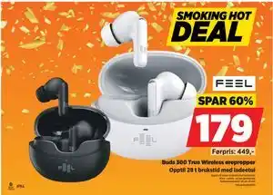 Prisen på Buds 300 True Wireless ørepropper finner du øverst på siden, sammen med datoene da tilbudet er tilgjengelig. Du kan sjekke prisen i gjeldende POWER kundeavis eller på POWER nettsiden, hvis du vil. Kampanjer og spesial tilbud gir deg en sjans om å kjøpe POWER produkter til den laveste prisen.