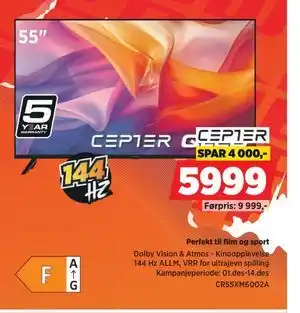 Nå på tilbud hos POWER: CEPTER QLED CR55XM6002A, NOK 5999 ✅ Gyldig fra 1-12 til 14-12.