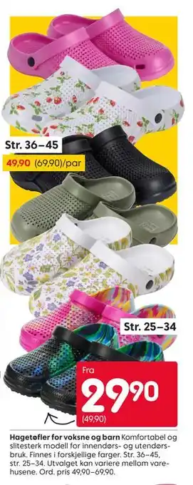 Aktuelle Hagetøfler for voksne og barn tilbud på Rusta fra 30-03 til 6-04.