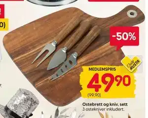 Nå på tilbud hos Rusta: Ostebrett og kniv, sett, Medlemspris ✅ Gyldig fra 24-12 til 4-01.