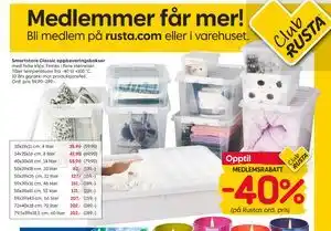 Nå på tilbud hos Rusta: Smartstore Classic oppbevaringsbokser med hvite klips. Finnes i flere størrelser., Medlemspris ✅ Gyldig fra 9-03 til 15-03.