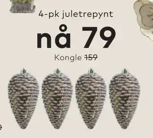 Nå på tilbud hos Skeidar: 4-pk juletrepynt. Kongle ✅ Gyldig fra 3-12 til 24-12.