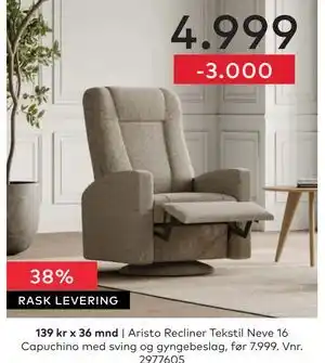 Nå på tilbud hos Skeidar: Aristo Recliner Tekstil Neve 16 Capuchino ✅ Gyldig fra 5-01 til 11-01.
