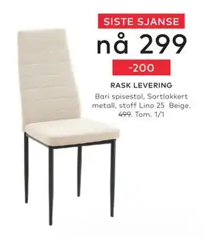 Dette tilbudet kan finnes i forskjellige butikker. Ta en titt på alle produkter for å få det billigste Bari spisestol. Hvis du vil finne ut om dette produktet har en større rabatt i en annen butikk, sjekk kategorien 'Møbler og Interiør'. Du vil sikkert se disse tilbudene også: Bari spisestol, Bari spisestol & Celina spisestol.