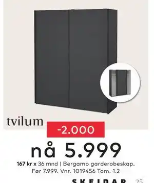 Bergamo garderobeskap tilbud hos Skeidar