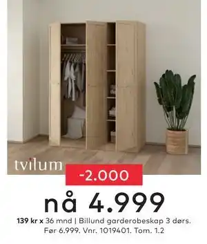 Billund garderobeskap 3 dørs tilbud hos Skeidar