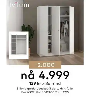 Nå på tilbud hos Skeidar: Billund garderobeskap 3 dørs ✅ Gyldig fra 16-04 til 17-05.