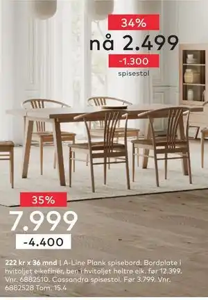 Cassandra spisestol tilbud og nettkampanjer hos Skeidar