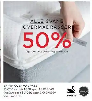 Skeidar tilbyr et bredt utvalg av produkter, i tillegg til EARTH OVERMADRASS. Hold deg oppdatert med ukens Skeidar kundeavis for å finne fantastiske tilbud og kampanjer. I tillegg til EARTH OVERMADRASS, kan du også finne disse tilbud: EARTH OVERMADRASS, Svane Intelligel Zense kontinentalseng med Earth Elastec overmadrass & Earth control.