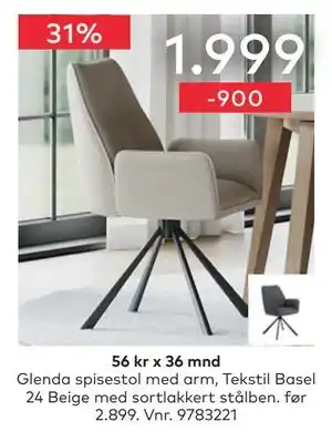 Nå på tilbud hos Skeidar: Glenda spisestol med arm ✅ Gyldig fra 2-01 til 11-02.
