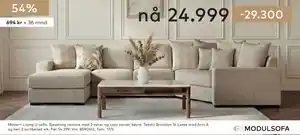 Denne Modern Living U-sofa er nå på tilbud hos Skeidar. Sjekk siste kampanjer med konkurransedyktig pris og gode rabatter. Du kan bestille Modern Living U-sofa online via Skeidar sin nettside eller kjøpe til lavest tilgjengelig pris. Kundeavisogtilbud.no samler alltid de beste Modern Living U-sofa-tilbudene for deg. Vil du være først med å vite om nye kampanjer? Aktiver varsler og få beskjed når Modern Living U-sofa er på tilbud igjen.Spørsmål og svar om Modern Living U-sofa