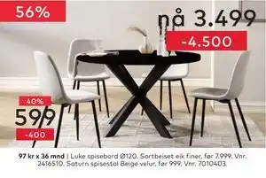 Saturn spisestol tilbud og nettkampanjer hos Skeidar