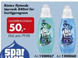 Nå på tilbud hos Sparkjøp: Biotex flytende tøyvask 840ml for hurtigprogram ✅ Gyldig fra 2-03 til 15-03.