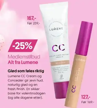 Lumene CC Cream og Concealer gir jevn hud, naturlig glød og en fresh finish. En sikker base for valentinsdagen (og alle dagene etter).