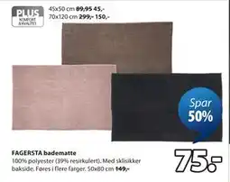| FAGERSTA badematte 1 stk | JYSK | 75,00 kr | 13 april 2026 | 18 april 2026 | |||