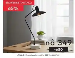 | 1 | Freya bordlampe 1 stk | Skeidar | 999,00 kr | 349,00 kr | Spar 650.00 kr. | 25 desember 2025 | 30 desember 2025 | Se tilbudet | |