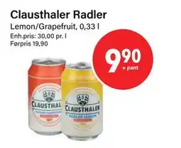 | CLAUSTHALER RADLER LEMON OG GRAPEFRUKT 4 x 0.33 L | Bunnpris | 40,00 kr | 29 desember 2025 | 31 desember 2025 | |||